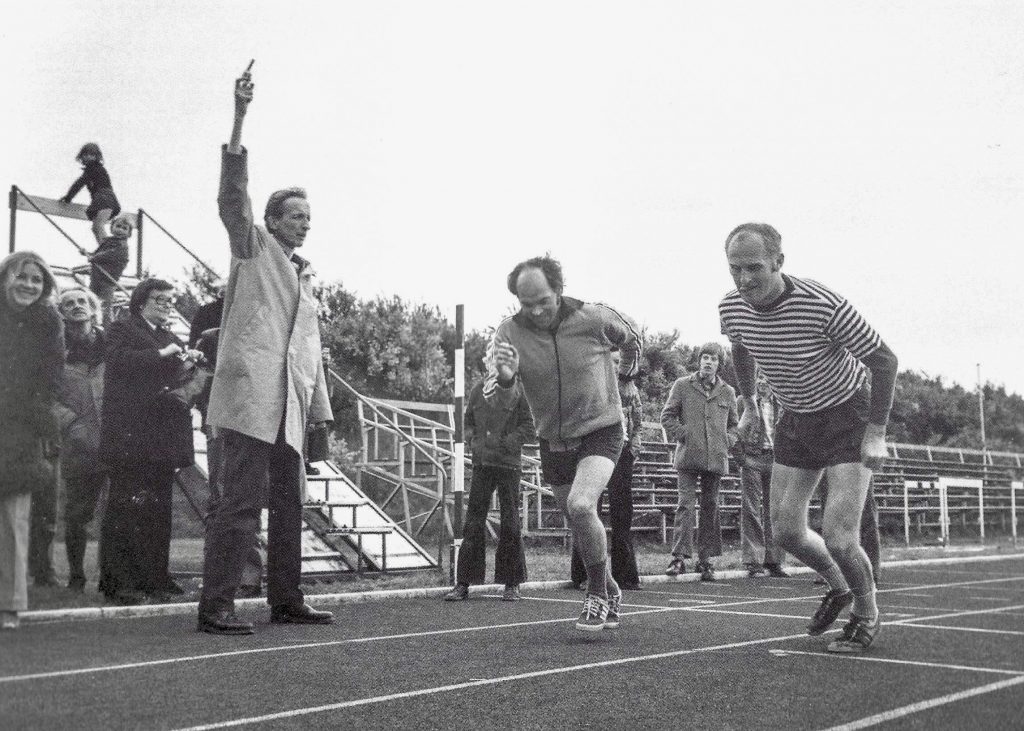 Terug naar ‘De mensen van Jan’: een uniek fotoboek, dat bekende en onbekende mensen toont, in eigen omgeving of tijdens hun werk, in het theater of op een onverwachte plaats. Neem bij voorbeeld de column ‘Klaas Gubbels haat lopen, maar dit is een kunstproject’. Jan Teeffelen legde in 1975 het ogenblik vast, waarop de kunstenaar van de koffiekannen met Cees van Maurik, kunstverzamelaar en GBK-voorzitter door museumdirecteur en kunstverteller Pierre Jansen op Sportpark Brakkestein wordt weggeschoten voor een hardloopwedstrijd over 5000 meter. Een ander beeld, dat persoonlijke herinneringen oproept, is de foto met de titel ‘De Schotse trainer Jimmy was kampioen bier drinken’. Jan van Teeffelen portretteert Jimmy Calderwood, NEC-trainer Leen Looyen, Burgemeester Ed d’Hondt en McDOS-eigenaar Frans Hendriks tijdens een Herenzitting in het Kolpinhuis, de plaats waar het Convent van Ex-Prinsen jarenlang de Knotsenburger heren trakteerde en vermaakte.