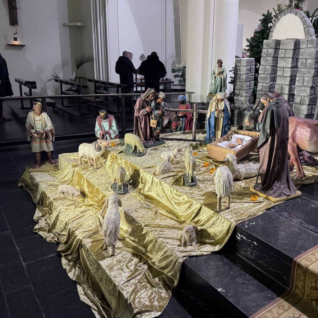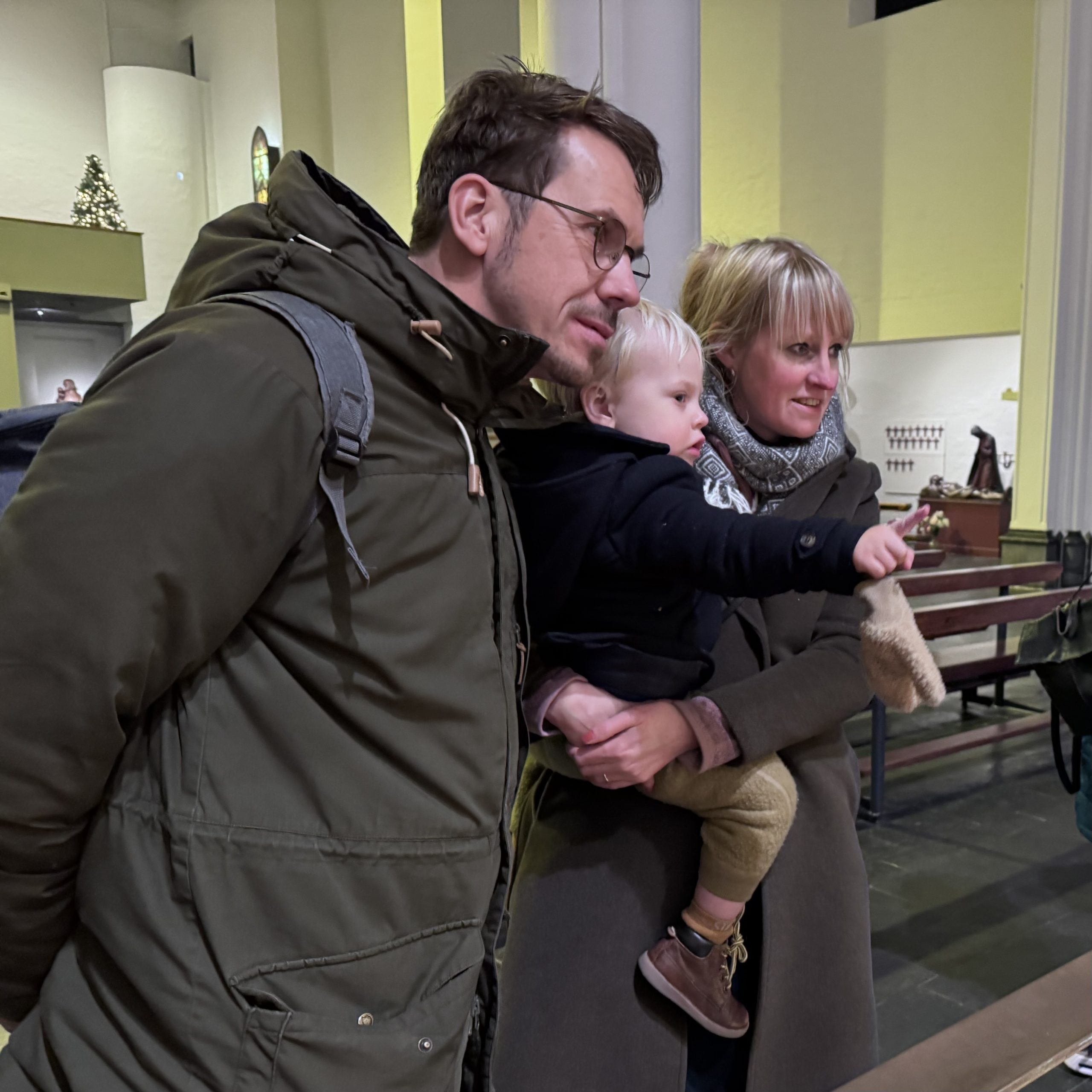 Acht jaar geleden vergezelde Sophie van Kempen voor de eerste keer Ans – mijn in 2024 overleden echtgenote – en mij naar de Nachtmis in de Petrus Canisiuskerk. In 2018 gebeurde dat weer, toen voor het eerst met Klaas Bouwmeester, met wie zij intussen bevriend was geraakt. Een traditie werd geboren, want in 2019 trokken wij opnieuw met zijn vieren naar de Petrus Canisiuskerk, de stadskerk van Nijmegen. De corona-epidemie belemmerde jammer genoeg in 2020 en 2021 de gebruikelijke Kerstvieringen. Maar in 2022 pakten Sophie, Klaas en ik de draad weer op, zij het zonder Ans: zij verbleef in tijdens de Kerstdagen 2022 en 2023, in het Revalidatiecentrum Waelwick in Ewijk om te herstellen van opeenvolgende herseninfarcten. Toch waren we vanaf 2023 met zijn vieren, want Lieuwe, de een half jaar jonge zoon van Sophie en Klaas, vergezelde zijn ouders, het eerste jaar in een draagzak, het jaar daarop in een mooie kinderwagen en nu – in 2025 – zonder hulpmiddelen, maar slapend in de armen van zijn moeder. Tijdens het zingen van de kerstliedjes werd hij wakker. Meezingen doet hij wellicht in 2026. De kerstgroepen boeien hem nu al.