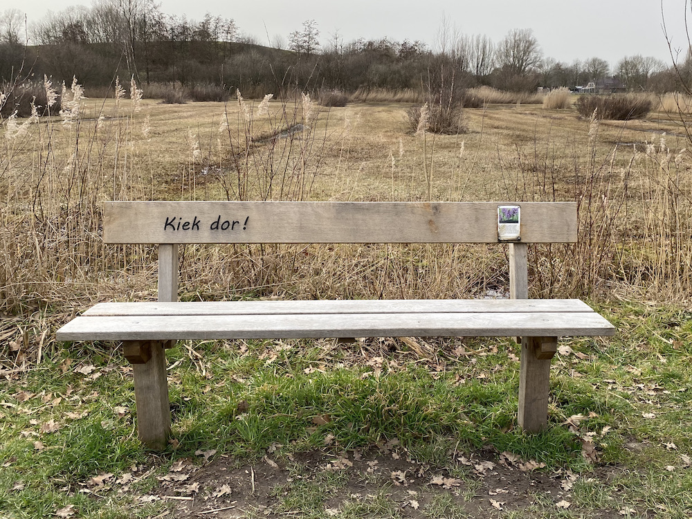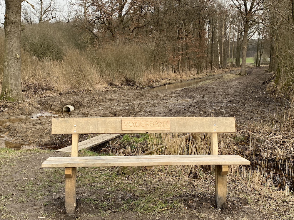 Wie de gebruikelijke wandeling maakt door de Bruuk, het mooie en stille natuurreservaat tussen Breedeweg en Horst, treft op strategische plaatsen langs de route een viertal stevige, houten banken. Drie banken dragen een naam: namelijk Zwambank, Voijerbank en Kiek Dor, met uitroepteken. Het vierde exemplaar staat naamloos te wachten op wandelaars, die even willen uitrusten. Die ‘bank zonder naam’ bevindt zich langs de landweg, die dwars door de Bruuk loopt, vanaf de ingang aan de Hoge Waldse weg in de richting van Horst. Waarom die bank geen naam heeft, valt evenmin te achterhalen als de diepere betekenis van Zwam en Voijer. Kiek Dor, dat is natuurlijk Groesbeeks voor de aansporing om verder te kijken dan de neus lang is, naar een toevallige reiger of ooievaar of naar het verrassende landschap.