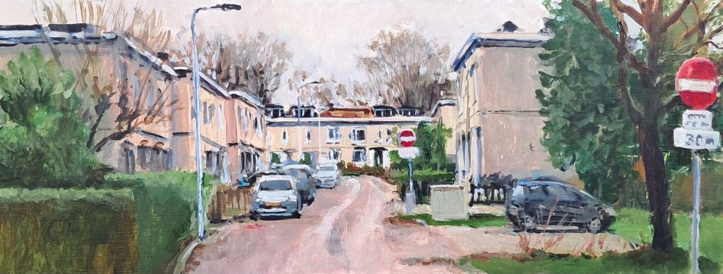 Later zou ik Diederik vaker tegenkomen, ook op straat: een toepasselijke plek voor een kunstenaar, die letterlijk en figuurlijk aan de weg timmert zoals in de week, waarin hij de omheining van de nieuwbouw van de HAN aan de Driehuizerweg met kleurrijke, maar helaas tijdelijke taferelen verfraaide. Diederik Grootjans is geen ‘straatartiest’, wel een veelzijdig kunstenaar, die van tijd tot tijd zijn even artistieke als ambachtelijke voorliefde voor straat-, plein- en wegbeelden in opvallende , meestal rake beelden vastlegt. Zijn verrassend voornemen bracht mij op het idee van een andersoortig jaarplan voor 2026: een wekelijkse column naar aanleiding van een onverwacht bericht of ongedachte gebeurtenis, die een aanleiding is voor het opfrissen van het geheugen: een gevarieerde reeks van ‘flashbacks’, die de verbinding tussen verleden en vandaag, tussen ooit en nu versterken.